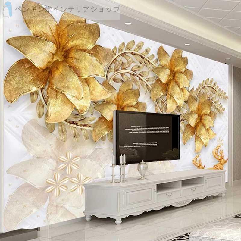 壁紙 おしゃれ 3d 立体 部屋 リビング 防水 防カビ 防音 立体 花 ゴールド Ae おしゃれ壁紙カーテンのペンギン堂 通販 Yahoo ショッピング